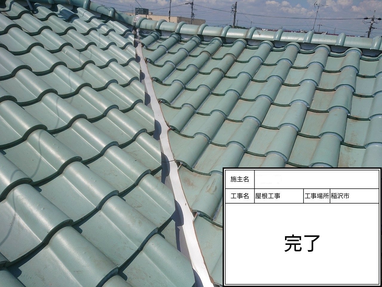風の影響により屋根に不具合が生じた家屋の瓦屋根の風災被害工事を行いました。